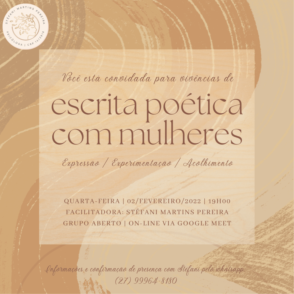 Nosso próximo encontro de vivência de escrita poética está agendado para o dia 02/02/2022, 18:30.